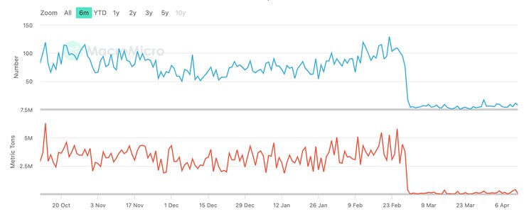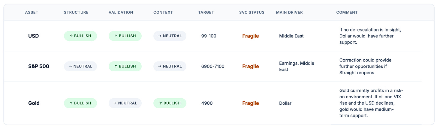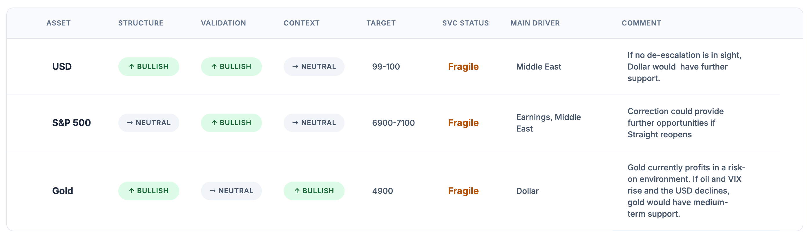 However, weekend headlines suggest that hopes for a resolution of the conflict may be premature. Trading purely based on headlines increasingly resembles a coin toss. What remains worth monitoring, though, is the flow through the Strait of Hormuz, which continues to operate at record lows.