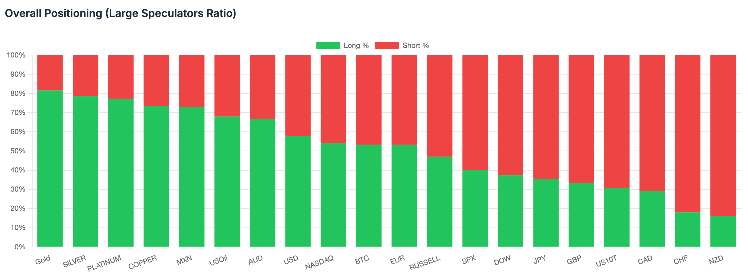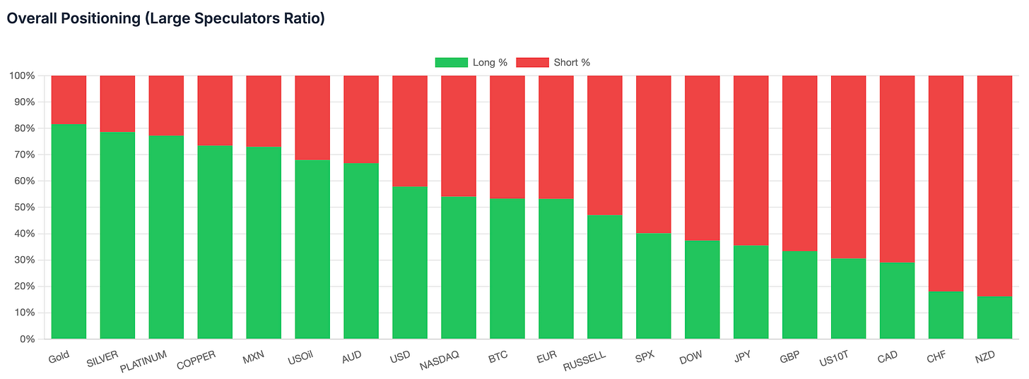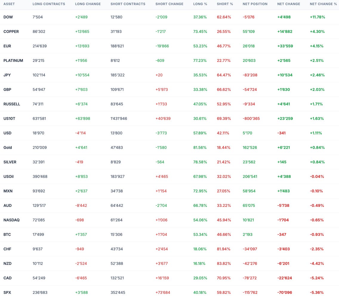Before turning to this week’s macroeconomic data, below is an overview of recent positioning shifts across major asset classes, based on our proprietary Gauch Research COT Visualizer.