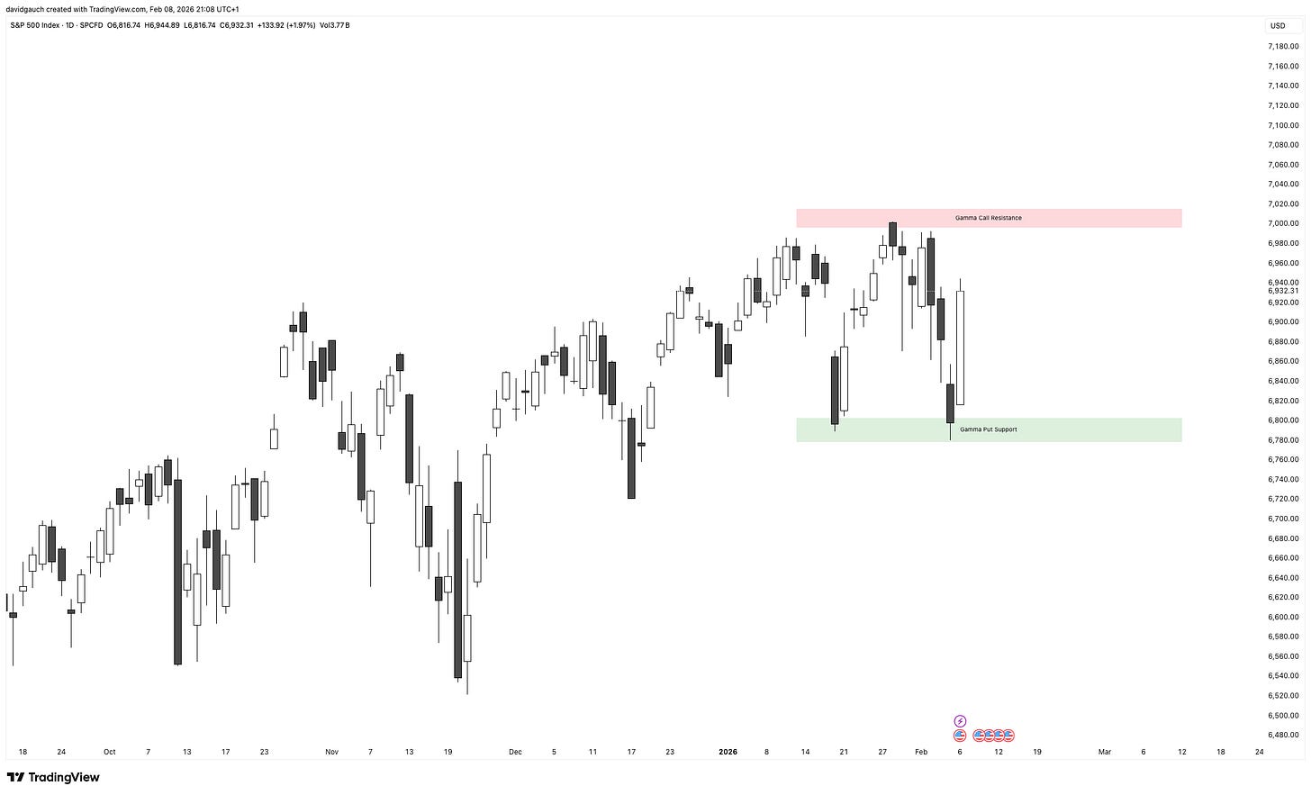 At present, the market continues to trade between the two primary GEX zones. A break below the put-support area would open the door to further downside, whereas a decisive move through the gamma wall would point to additional upside potential.