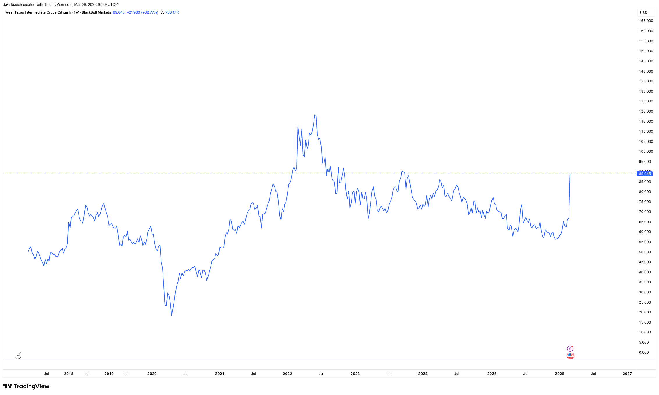 For private consumers, however, the raw oil price itself is less relevant than what ultimately shows up at the gas station. And while we are indeed seeing a spike in US gasoline prices, they are still lagging behind the peaks observed in 2023 and 2024.