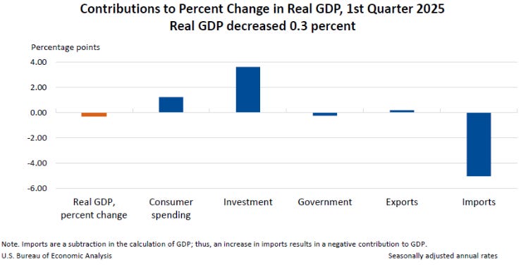 Essentially, firms rushed to bring products into the U.S. before higher import duties kicked in. This spike in imports negatively affects GDP via the (X – M) component of the formula — as imports subtract from total GDP. 📉📦