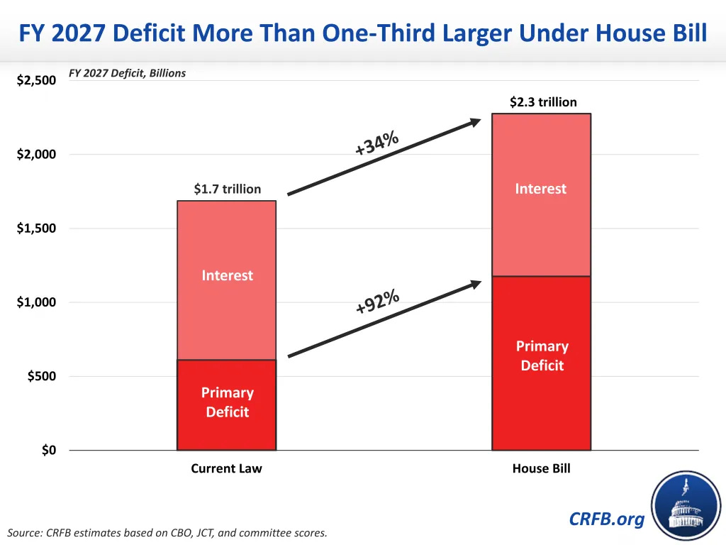 The FY 2027 deficit would rise to $2.3 trillion, up from $1.7 trillion under current law